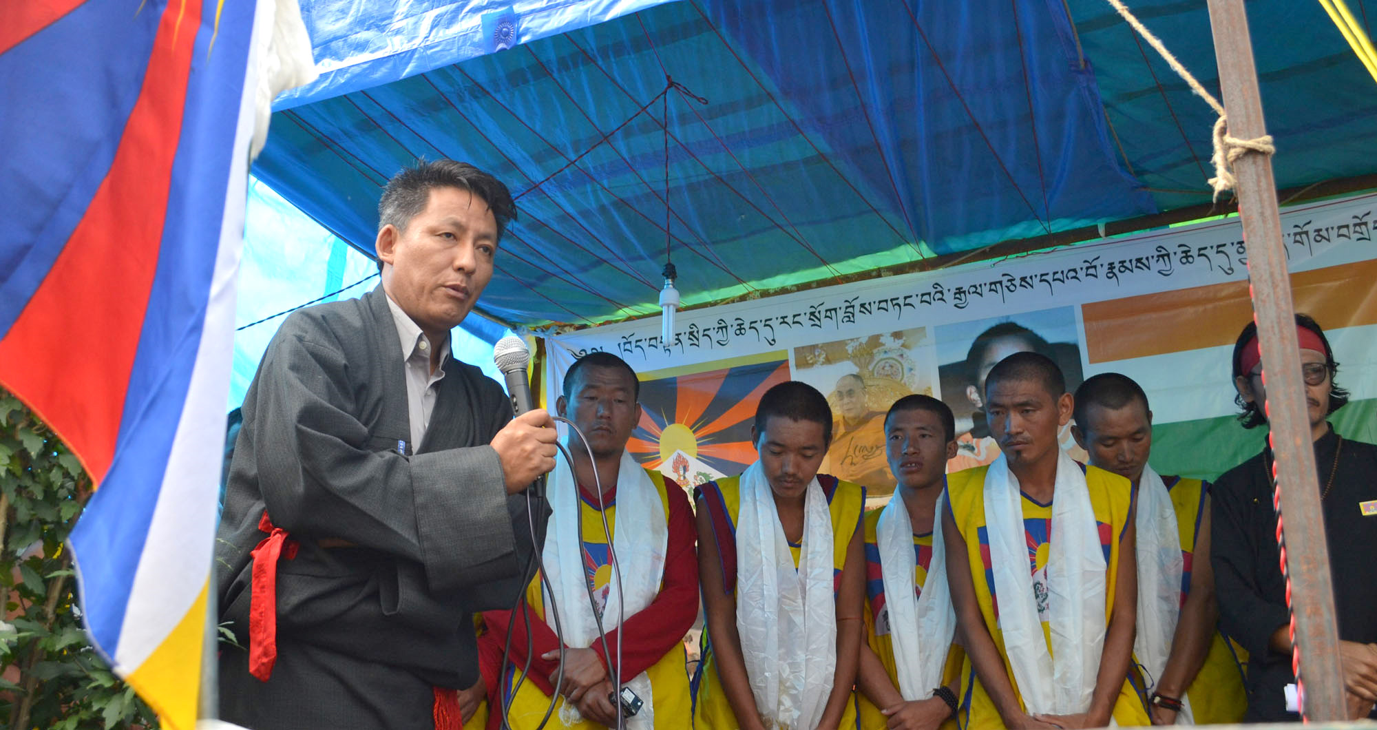 印度南部西藏甘丹寺絕食僧眾發言人洛桑強巴在儀式上感謝至今為他們的活動提供援助和支援的組織和個人,並誓言將為西藏自由事業付出一切。洛桑強巴表示,(錄音)感到遺憾和羞愧的是,由於缺乏活動經驗和資金,未能隨著西藏境內持續惡化的緊張局勢,繼續開展各種聲援活動,如果在將來任何組織發起抗議活動,他們有充分的準備和決心參與其活動,哪怕要付出生命代價,謝謝大家,西藏勝利!