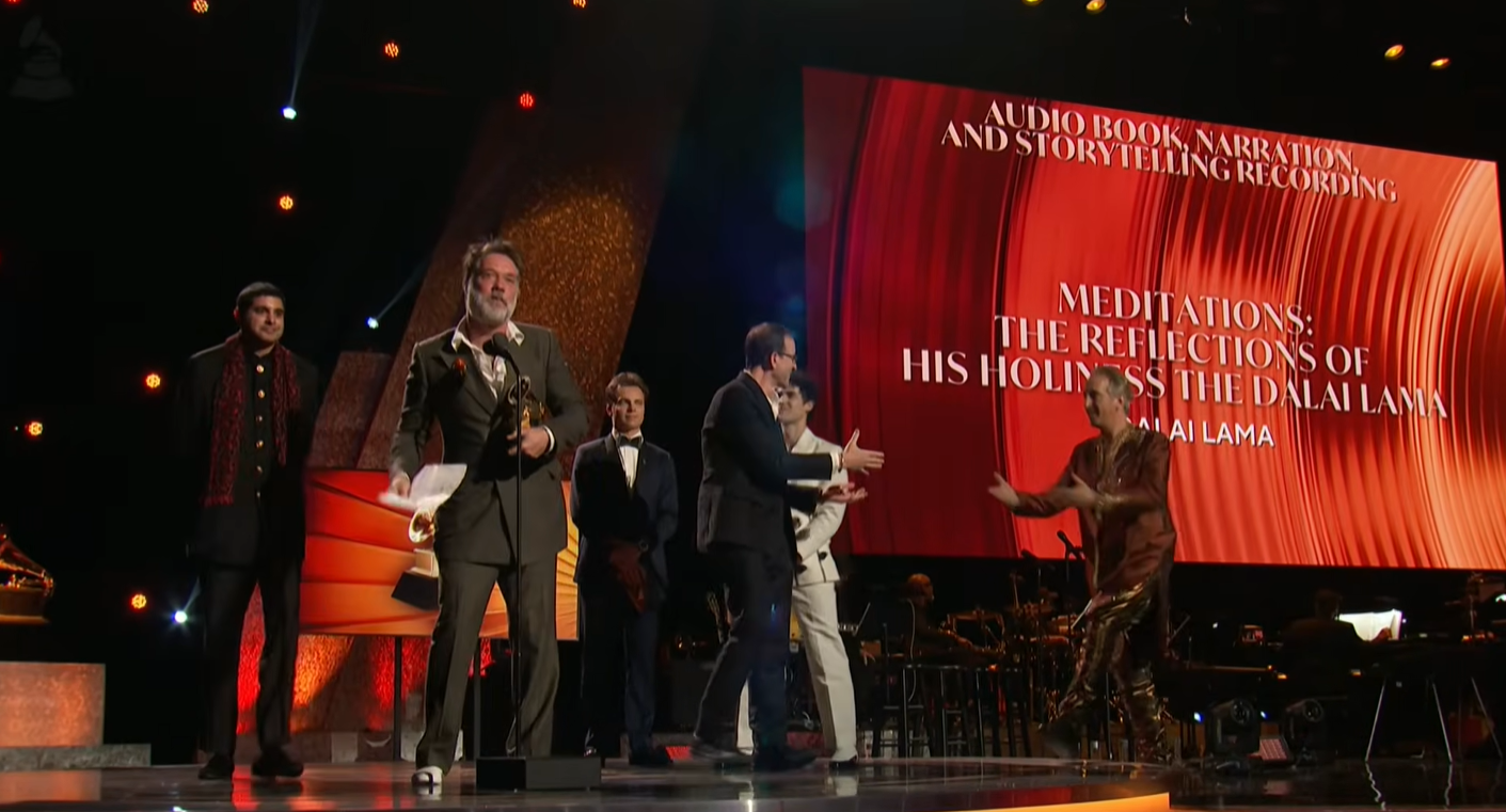 དེ་ཡང་ཁ་སང་ཕྱི་ཟླ་ ༢ ཚེས་ ༡ ཉིན་ཨ་རིའི་ California ཁེ་ལི་ཕོར་ནི་ཡའི་མངའ་སྡེའི་ Los Angeles ལོས་ཨེན་ཇི་ལི་སི་གྲོང་ཁྱེར་ནང་དུ་སྐབས་ ༦༨ པའི་རྒྱལ་སྤྱིའི་རོལ་དབྱངས་རྩེ་ཕུད་ Grammy Award གྷེ་རེ་མི་གཟེངས་རྟགས་འབུལ་བཞེས་ཀྱི་མཛད་སྒོ་ཞིག་ཚོགས་ཡོད་པ་དང་། མཛད་སྒོའི་ཐོག་འཛམ་གླིང་ཁྱོན་ཡོངས་ཀྱི་ནང་དུ་རོལ་དབྱངས་རྩེད་ཕུད་ཀྱི་གཟེངས་རྟགས་སྡེ་ཚན་མང་པོ་ཡོད་པའི་ནང་ནས་ Best Audibook Narration འམ་སྒྲ་དེབ་རྩེ་ཕུད་ཀྱི་གཟེངས་རྟགས་ཐོབ་འདུག སྒྲ་དེབ་ཀྱི་བརྗོད་བྱ་དེ་ནི་ Meditations: The Reflections of His Holiness the Dalai Lama འམ་༸གོང་ས་ཏཱ་ལའི་བླ་མ་མཆོག་གི་དགོངས་བཞེད། སྒོམ་སྒྲུབ་ཅེས་པའི་སྐོར་ཡིན་པ་དང་། མཛད་སྒོའི་ཐོག་གཟེངས་རྟགས་དེ་བཞིན་ལས་གཞི་དེའི་ནང་རོལ་དབྱངས་ཐོག་ཕྱག་ལས་གནང་མཁན་མང་པོ་ཡོད་པའི་ནང་ནས་ཁེ་ན་ཌ་དང་ཨ་རིའི་གླུ་བ་དང་གཞས་རྩོམ་པ་པོ། Rufus Wainwright རུ་ཧྥུས་ཝེན་རཡིེཊ་ལགས་ནས་བཞེས་གནང་འདུག