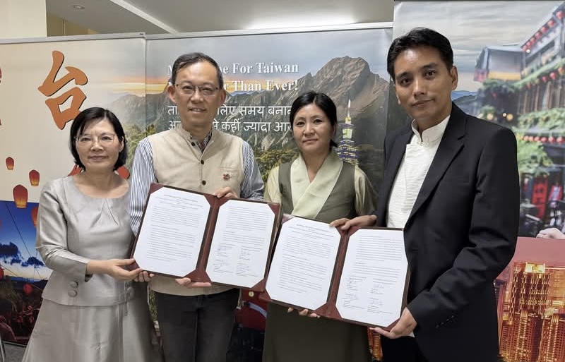 དེ་ཡང་ཁ་ཉིན་རྒྱ་གར་གྱི་རྒྱལ་ས་ལྡི་ལིར་རྟེན་གཞི་བྱས་པའི་ Taipei Economic and Cultural Center ཐའེ་པེ་ཚོང་ལས་དང་རིག་གཞུང་བསྟི་གནས་ཁང་དུ། ཐའེ་པེ་ཚོང་ལས་དང་རིག་གཞུང་བསྟི་གནས་ཁང་གི་སྐུ་ཚབ་འབུམ་རམས་པ་ Mu-min Chen ལགས་དང་། ཤེས་ཡོན་འགན་འཛིན་ Jill Lai ལགས། ཏཱ་ལའི་བླ་མ་མཐོ་རིམ་སློབ་གཉེར་ཁང་གི་སློབ་སྤྱི་འབུམ་རམས་པ་པ་སངས་ལགས། དེ་བཞིན་ལྡི་ལི་བོད་ཀྱི་སྐུ་ཚབ་དོན་གཅོད་ཀྱི་དྲུང་ཆེ་བཀྲ་ཤིས་བདེ་སྐྱིད་ལགས། ལྷོ་སྤྱི་འཇིགས་མེད་འབྱུང་གནས་ལགས་བཅས་མཉམ་ཞུགས་ཀྱིས། ཤེས་ཡོན་འགན་འཛིན་ Jill Lai ལགས་དང་ཏཱ་ལའི་བླ་མ་མཐོ་རིམ་སློབ་གཉེར་ཁང་གི་སློབ་སྤྱི་འབུམ་རམས་པ་པ་སངས་ལགས་གཉིས་ཀྱིས་གན་རྒྱ་ལ་མཚན་རྟགས་བཀོད་ཡོད་པ་རེད།