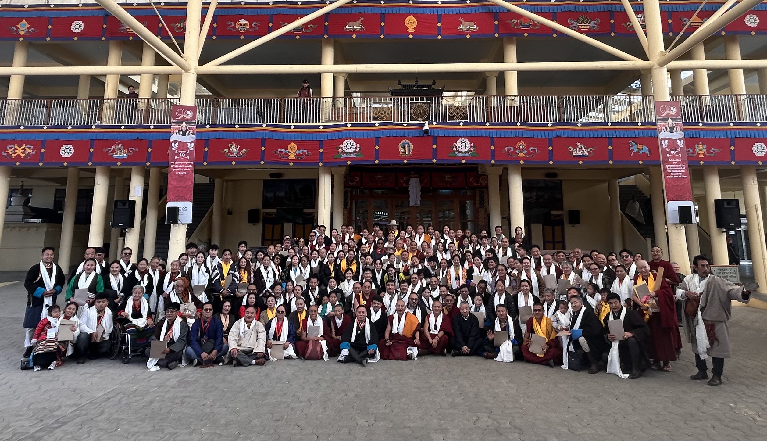 བོད་ཀྱི་ཆབ་སྲིད་བཙོན་ཟུར་རྣམས་ཀྱིས་སྤྱི་ནོར་༸གོང་ས་༸སྐྱབས་མགོན་ཆེན་པོ་མཆོག་གི་སྐུ་བཅར་སྲི་ཞུ་ལས་བྱེད་པ་རྣམས་ལ་བཀའ་དྲིན་རྗེས་དྲན་གྱི་གཟེངས་རྟགས་འབུལ་བཞེས་གནང་བ་དང་འབྲེལ། མཛད་སྒོའི་ཐོག་བོད་མི་རྣམས་ཀྱིས་རང་གི་སྐད་ཡིག་ཐོག་སྔར་ལྷག་ཤུགས་སྣོན་རྒྱག་དགོས་གལ་གྱིས་གླེང་སློང་ཤུགས་ཆེ་གནང་སོང་།