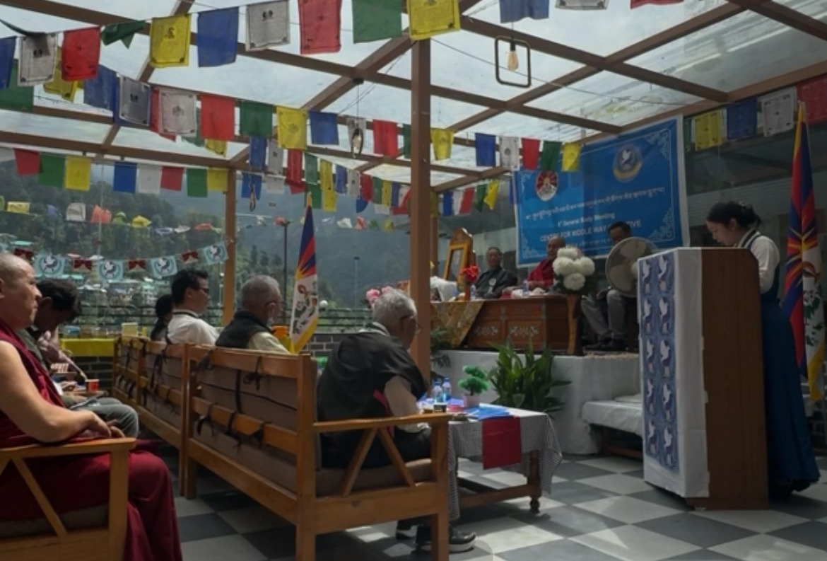 དེ་ཡང་ཟླ་བ་འདིའི་ཕྱི་ཚེས་ ༡༡ ནས་ ༡༣ བར་ཉིན་གྲངས་གསུམ་རིང་བཞུགས་སྒར་མེག་གྷན་དུ་ཡོད་པའི་ཤིང་མཁར་མགྲོན་ཁང་ Wood Castle དུ་འཚོགས་པའི་ཚོགས་ཆེན་ཐོག་ཚོགས་བཅར་བ་རྣམས་ཀྱིས་ས་གནས་རྒྱལ་སྤྱིའི་དབུ་མའི་ལམ་མི་མང་ལས་འགུལ་ཁང་གི་ལས་བསྡོམས་སྙན་སྒྲོན་དང་དབུས་ཀྱི་རྩིས་ཁྲ་དང་ལས་བསྡོམས་ཐོག་ས་གནས་ཁག་ནས་དྲི་བ་དྲི་ལན་གནང་བ་མ་ཟད། ལྷག་པར་འདི་ལོ་༸སྐུའི་གོ་སྟོན་དང་བསྟུན་རྒྱལ་སྤྱིའི་དབུ་མའི་ལམ་མི་མང་ལས་འགུལ་ཁང་གིས་དགའ་དད་སྤྲོ་གསུམ་གྱི་སྒོ་ནས་བྱམས་བརྩེའི་ལོ་སྲུང་བརྩི་ཆེད་ལས་འགུལ་སྤེལ་རྒྱུ་ཇི་དགེའི་སྐོར་དང་འབྲེལ་གྲོས་ཆོད་ལྔ་དང་བསྒྲགས་གཏམ་གཅིག་བཅས་སྤྱི་མོས་གཏན་འབེབས་གནང་བ་དང་དེ་བཞིན་ཚོགས་ཆེན་གྱི་ཉིན་མཐའ་མར་རྒྱལ་སྤྱིའི་དབུ་མའི་ལམ་མི་མང་ལས་འགུལ་ཁང་གི་སྐབས་ ༧ པའི་དབུས་རྒྱུན་གསར་པའི་སྔོན་འགྲོ་དང་དངོས་གཞིའི་འོས་འདེམས་གནང་བའི་བརྒྱུད། གསར་འདེམས་བྱུང་བའི་དབུས་རྒྱུན་ནང་ཁུལ་གསང་བའི་འོས་ཤོག་འཕངས་ཏེ་དགེ་བཤེས་བློ་བཟང་ཆོས་འཕེལ་ལགས་སྐབས་བདུན་པའི་ཚོགས་གཙོ་དང་བསྟན་འཛིན་བཤེས་གཉེན་ལགས་ཚོགས་གཞོན། དེ་བཞིན་ཀུན་དགའ་ནོར་བུ་ལགས་དྲུང་ཆེར་བདམས་ཐོན་བྱུང་འདུག